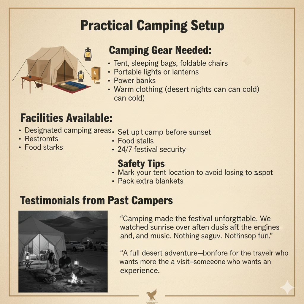 Whether you are drawn to the roar of engines or the cultural charm of traditional Emirati hospitality, the festival offers an unforgettable desert experience. But visitors often face one important choice: Should you camp overnight or visit for just the day?