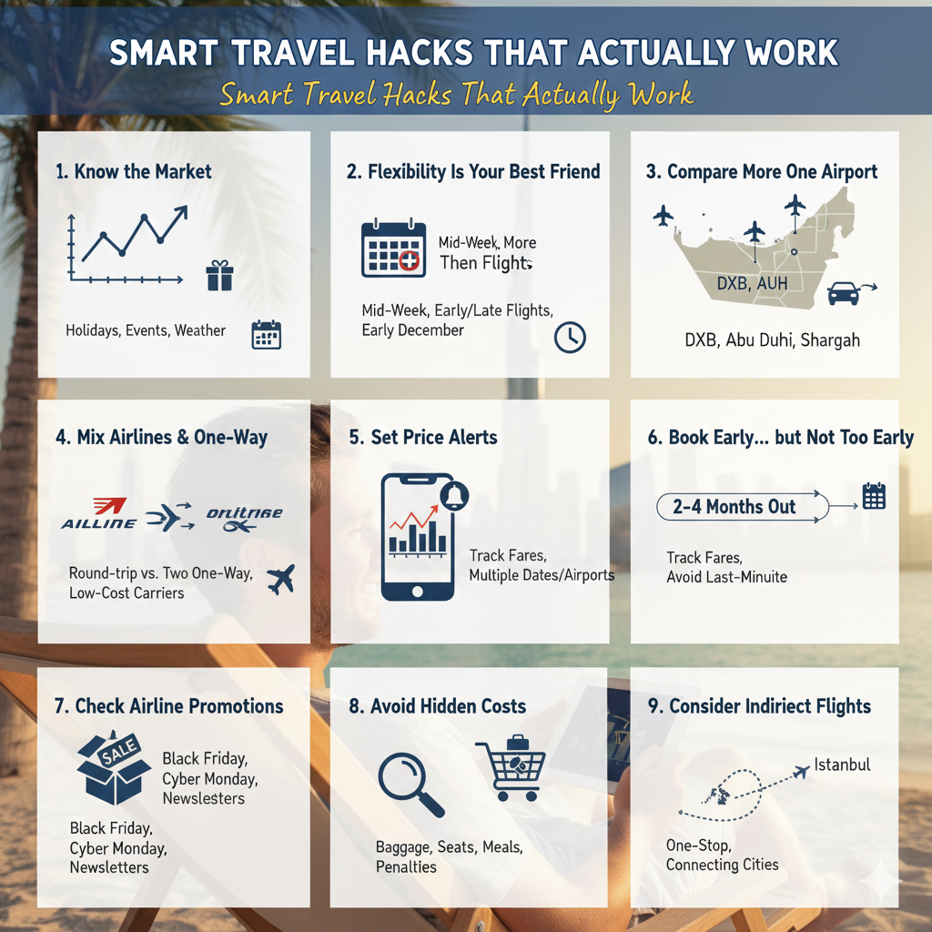 If you’re planning a December getaway to Dubai, Abu Dhabi, or Sharjah, this guide offers practical and easy-to-follow hacks that will help you save money, choose better flight options, and enjoy a smoother travel experience.