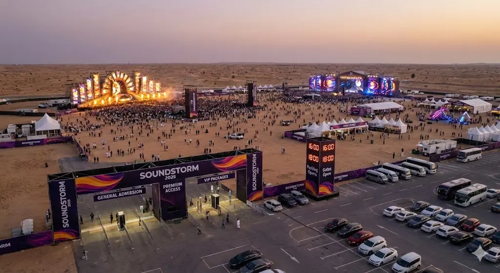 Soundstorm 2025 will take place in Banban, near Riyadh. The venue is designed to accommodate large crowds while offering multiple stages, food courts, and entertainment zones. The festival runs from December 11 to December 13, 2025, with multiple ticket options available for different levels of access and experience.